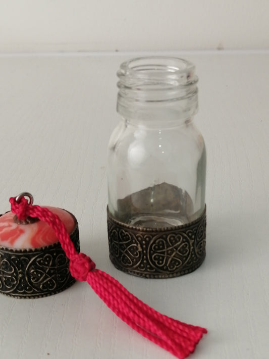 Clear glass and brass bottle